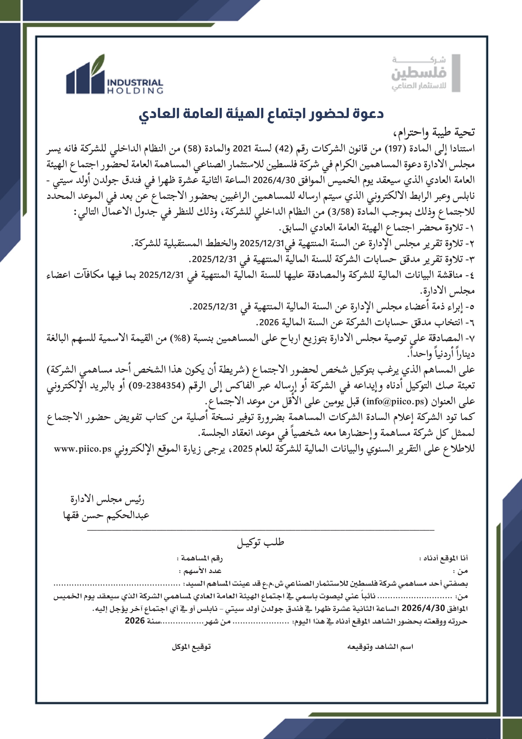 دعوة لحضور اجتماع الهيئة العامة العادي 2026